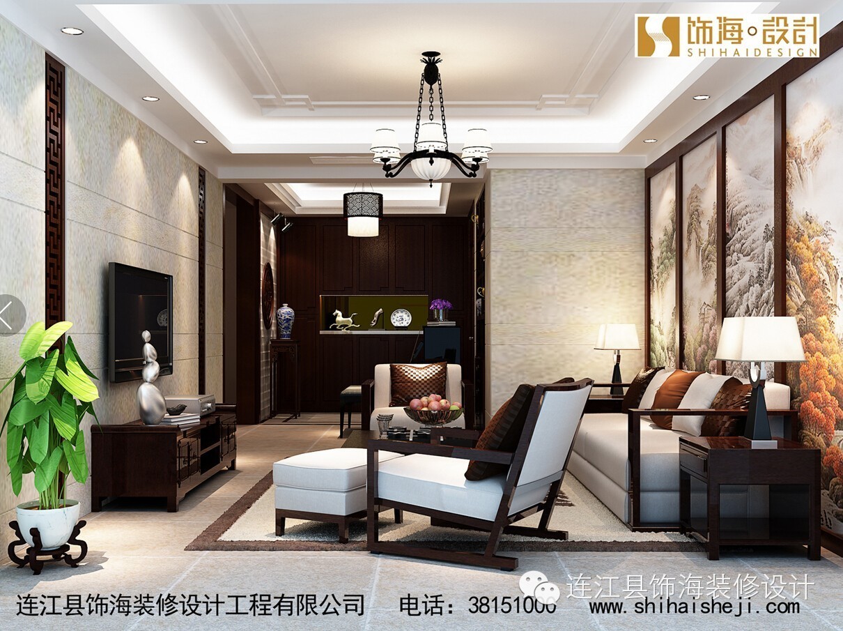 项目地址:日出海韵3#505 设计面积:140 风格要求:新中式 设计理念:本案例为新中式风格 古典中式与现代简约完美结合。稳重而且时尚、客厅电视墙采用大面的仿古砖,两侧用中式窗花修饰,简单、大气。沙发背景用简单的四幅画一笔带过,入户玄关青一色的青砖。整个空间犹如一幅美丽的画卷。