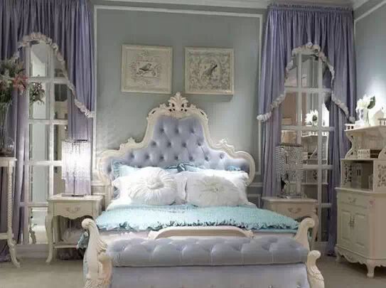 蓝白色调浪漫而沉静。蓝色清透与白色的安静相互映衬,给人海一般的梦幻感觉,优雅的配色似如歌的行板,浪漫温馨,装点出如水一般纯净又内涵丰富的卧室氛围。